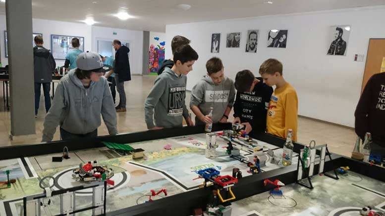 Kürzlich schallte wieder der Schlachtruf „1,2 Lego“ durch die Aula der Gesamtschule Wenden. Trotz der schwierigen Wetterverhältnisse hatten sich von den ursprünglich 15 gemeldeten Teams, neun auf den Weg ins verschneite Sauerland gemacht, um die Pokale der First Lego League in den Kategorien Teamspiel, Forschungspräsentation, Robodesign und Robot-Game nach Hause zu holen.