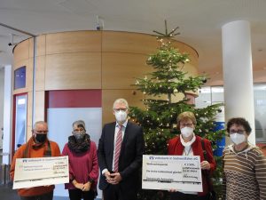 Traditionell verzichtet die Volksbank in Südwestfalen eG auf Weihnachtsgeschenke für Kunden und Geschäftspartner zugunsten einer Weihnachtsspende an karitative Einrichtungen. In diesem Jahr geht die Spendensumme von 10.000 Euro zu gleichen Teilen an vier Vereine aus dem Märkischen Kreis und dem Siegerland, die sich den Themen Demenzerkrankung und Entlastung der Angehörigen widmen: die Atempause Hüttental – Ökumenischer Entlastungsdienst e. V., VergissMeinNicht Netphen e. V. sowie die Arche Lüdenscheid gGmbH für das Demenzcafé Ankerplatz und den Treffpunkt-Demenz-Balve e. V.