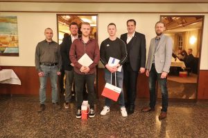 Als Prüfungsbeste wurden Dennis Schauerte (1., R & S Metalldesign GmbH & Co. KG) und Jan Frank Leon Wedemeyer (2., Herling Metallbau GmbH, Siegen) ausgezeichnet und sowohl von der Innung als auch von Dirk Henrich (Signal Iduna) mit einem besonderen Präsent bedacht.