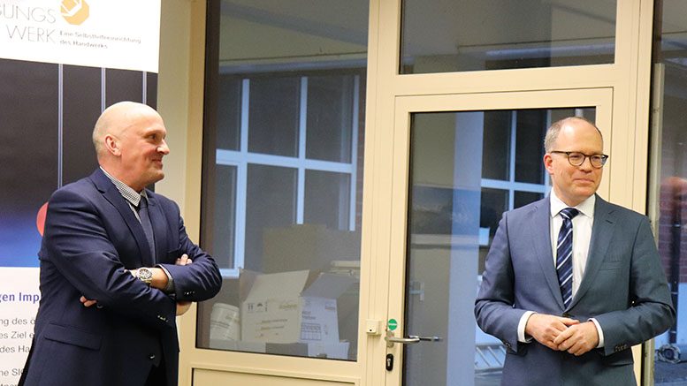 Im Foyer des AWZ Baus haben sich ausgewählte Aussteller eingefunden, um den Handwerksbetrieben aus dem Baugewerbe interessante Produkte und Dienstleistungen vorzustellen. Nach Meinung von Stephan Hundhausen, Obermeister der Bauinnung Westfalen-Süd, ist eine Fachmesse ein wichtiger Ort zum Austausch zwischen Handwerkern und Herstellern. Denn für den Arbeitsalltag auf den Baustellen brauche man durchdachte Lösungen von Fachleuten für Fachleute.