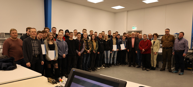31 ehemalige Auszubildende von Wittgensteiner Unternehmen haben vor dem Prüfungsausschuss der Industrie- und Handelskammer Siegen ihre Facharbeiterprüfung erfolgreich abgelegt. Für sie gehören die drei- oder dreieinhalb Jahre der praktischen und theoretischen Ausbildung jetzt der Vergangenheit an, denn sie alle haben ihre Ausbildung offiziell abgeschlossen und treten nun ins reguläre Berufsleben ein. Anlässlich der Übergabe der Facharbeiterbriefe gab es vergangenen Freitag eine kleine Feierstunde in den neugestalteten Räumlichkeiten des Bildungszentrums Wittgenstein (BZW), der Nachwuchsschmiede der Wittgensteiner Industrie. In die Infrastruktur der neuen Räumlichkeiten dieser Nachwuchsschmiede sind zuletzt rund eine Million Euro investiert worden, darunter 70 Prozent Fördermittel von Land und Bund.