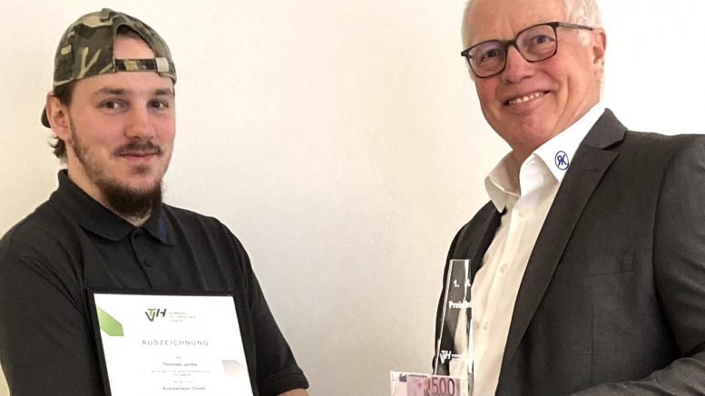 Große Anerkennung für eine bemerkenswerte Leistung: Thomas Janke, Auszubildender der Krückemeyer GmbH in Wilnsdorf, wurde vom Verband Technischer Handel e.V. (VTH) als bester „Top-Azubi 2025“ ausgezeichnet. Mit 94 von 100 möglichen Punkten in seiner Abschlussprüfung zum Fachlageristen erhielt der 28-Jährige den ersten Preis in Form einer Trophäe, einer Urkunde und einem Preisgeld von 500 Euro aller Auszubildenden im Technischen Handel im gesamten deutschsprachigen Raum durch. Die feierliche Preisverleihung fand auf der Jahrestagung des VTH in Hamburg statt.