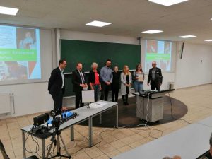 Professor Dr.-Ing. Peter Haring Bolivar, Prorektor für Forschung und wissenschaftlichen Nachwuchs an der Universität Siegen, gratulierte den Preisträgern im Namen der Hochschule. Professor Dr. Holger Schönherr, Dekan der Naturwissenschaftlich-Technischen Fakultät tat dies ebenfalls im Namen der Fakultät. Beide übergaben anschließend mit Professor Witzke und Dr. Doublet die Siegerurkunden.