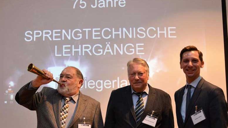 Dieter Reinschmidt blickte in seinen Ausführungen bis zu den Ursprüngen der Sprengtechnischen Lehrgänge vor 75 Jahren zurück und zitierte aus alten Notizen der Gewerbeaufsicht zum Stichwort „Sprengstoffe“: „Anlässlich der vorgekommenen Unfälle, die zu einem großen Teil auf nicht genügender Beachtung der Unfallverhütungsvorschriften über Sprengarbeiten zurückzuführen sind, wird empfohlen, als Voraussetzung für die Prüfung von Bewerbern eine Mindestausbildungszeit von einem Jahr bei einem anerkannten erfahrenen Sprengmeister sowie die Teilnahme an Sprenglehrgängen zu fordern, wie sie beispielsweise von der Bergschule in Siegen durchgeführt werden.”