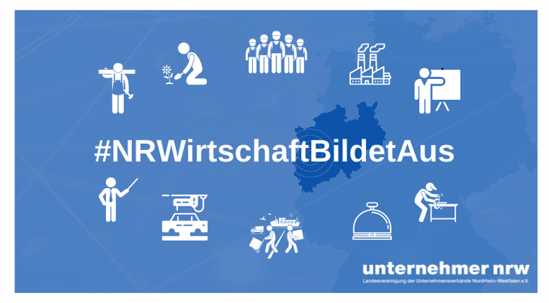 Die Corona-Pandemie geht auch am Ausbildungsmarkt nicht spurlos vorüber. Besorgniserregend ist insbesondere der sich abzeichnende starke Bewerberrückgang. Damit dürften die praktischen Schwierigkeiten vieler Betriebe, ihre Ausbildungsplätze zu besetzen, weiter zunehmen. Gleichzeitig ist Ausbildung auch ein politisches Thema, bei dem es regelmäßig um das Engagement der Wirtschaft geht und dieses auch kritisch hinterfragt wird. Vor diesem Hintergrund möchte unternehmer nrw gemeinsam mit Mitgliedsverbänden und Unternehmen in einer Aktionswoche #NRWirtschaftBildetAus vom 7.-11. Juni 2021 auf das vielfältige Ausbildungs-Engagement der nordrhein-westfälischen Wirtschaft hinweisen und für Ausbildung werben. Es ist unternehmer nrw, seinen Mitgliedsverbänden und Unternehmen wichtig, junge Menschen verstärkt auch und gerade in diesen Zeiten anzusprechen und für Ausbildung zu gewinnen. Ebenso geht es bei der Aktionswoche #NRWirtschaftBildetAus darum, das große Engagement der Wirtschaft rund um das Thema Ausbildung auch in diesen schwierigen Corona-Zeiten deutlich zu machen.