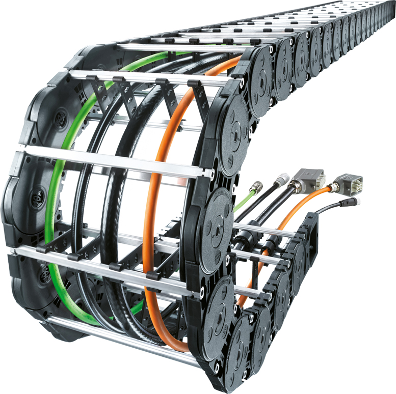 Die Energieführungsketten des Typs MC0950 gehören zur flexiblen Vario-Line von TSUBAKI KABELSCHLEPP – es handelt sich dabei um multivariable Energieführungen mit vielfältigen Stegvarianten.