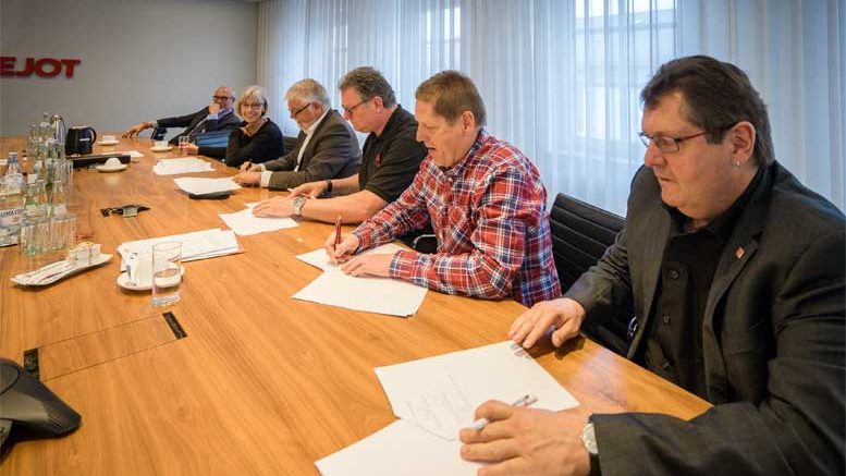 Um das sicherzustellen, haben die Geschäftsführung der EJOT-Gruppe, der Betriebsrat sowie die Industriegewerkschaft Metall eine Zukunftsvereinbarung unterschrieben: „Arbeit 2020 in NRW – Arbeit der Zukunft gemeinsam gestalten.“ Die Vereinbarung ist ein wichtiges Ergebnis des vom Arbeitsministerium NRW mit ESF-Mitteln finanzierten Projektes „Arbeit 2020“. Sie wurde auf Basis von intensiven, stets konstruktiven Gesprächen und gemeinsamen Workshops der Betriebsparteien, der Projektleitung unter Beteiligung der IG Metall Siegen erarbeitet. Sie beschreibt notwendige Gestaltungsfelder und soll die Beteiligten in die Lage versetzen, auf Veränderungen in der Arbeitswelt zu reagieren.