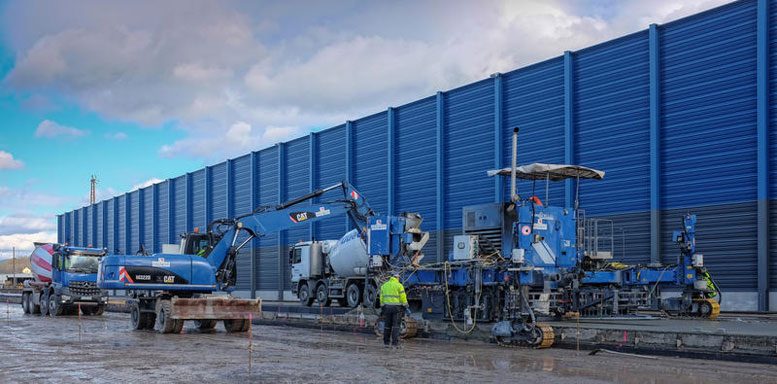 Die Verkehrsflächen des Container-Terminals in Kreuztal werden nun durchgehend in 48 cm dickem, vor Ort gegossenem Beton hergestellt. Insgesamt werden rund 6.000 m³ Beton je nach Nutzungsbereichen (Gefahrgutabstellung, Tankfläche, Umschlagfläche, Abstellfläche) in unterschiedlichen Sorten verbaut. Die abschließenden Betonarbeiten haben nach Ostern begonnen. Dabei kommen Geräte wie Gleitschalungs- und Walzenfertiger zum Einsatz, die sonst eher beim Bau von Flughafenlandebahnen oder Autobahnen zu sehen sind. Ein Gleitschalungsfertiger ist ein Fertiger auf Raupenfahrwerk, der in einem Arbeitsgang die Verteilung, Verdichtung und Profilierung des Deckenbetons übernimmt. Die Betonoberfläche erhält eine gute Ebenheit und Griffigkeit. Gleitschalungsfertiger können bis zu 16 Meter breite Bahnen in nur einem Arbeitsgang herstellen. „Wir hätten nie damit gerechnet, beim Bau unseres Container-Terminals solche Pionierarbeit leisten zu müssen, die den planerischen Grundlagen für künftige Container-Terminals in Deutschland vorgreift“, sagt Landrat Andreas Müller: „Nachdem wir diese Herausforderung erfolgreich gemeistert haben, fiebern wir nun dem Abschluss der Arbeiten entgegen und freuen uns auf die Inbetriebnahme des Terminals im September.“