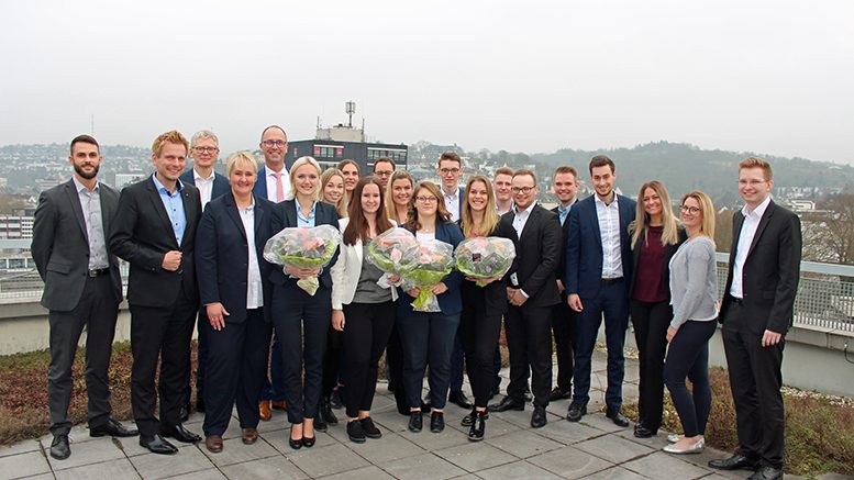 Mit Beginn dieses Jahres haben 15 Auszubildende aus dem Jahrgang 2017 und ein Auszubildender aus dem Jahrgang 2016 ihre Abschlussprüfung vor der Südwestfälischen Industrie- und Handelskammer Hagen und der Industrie- und Handelskammer Siegen erfolgreich abgeschlossen. 14 von ihnen kann die Volksbank in Südwestfalen eG zukünftig in ihren Reihen begrüßen. Eine Absolventin orientiert sich beruflich neu und ein anderer beginnt ein Studium. Gemeinsam mit seinen Vorstandskollegen Jens Brinkmann und Roland Krebs beglückwünschte Volksbank-Vorstandssprecher Karl Michael Dommes die jungen Kolleginnen und Kollegen bei einem kleinen Empfang in der Hauptstelle Siegen.