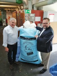 Bei der anschließenden Betriebsbesichtigung gab Dr. Metz dem Mitglied des Ausschusses für Verkehr und digitale Infrastruktur und stellvertretendem Mitglied des Ausschusses für Bildung, Forschung und Technikfolgenabschätzung des deutschen Bundestages einen Überblick über die Verarbeitung der Daunen und Federn zu hochwertigen Füllmaterialien für Bettdecken und Kopfkissen. Aber nicht nur das. Im vergangenen Jahr hat das Unternehmen gemeinsam mit Wissenschaftlern der RWTH Aachen einen Isolierputz vorgestellt, der durch die Beimengung von Federn eine besonders hohe Dämmwirkung entfaltet und gleichzeitig schwer entflammbar ist. Untersucht und entwickelt werden auch Möglichkeiten aus dem Keratin der Federn Garne zu spinnen mit entsprechenden Eigenschaften. „Gerade auf diesem Gebiet sehen wir noch erhebliche Potenziale“, meint Dr. Metz.