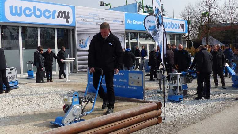 Vorgestellt wurde beispielsweise der bislang kleinste Bodenverdichter, die Vibrationsplatte CF 1 Hd, mit Idealmaßen: 60 kg leicht, 35 cm breit und 10 kN stark. Wendig, vielseitig einsetzbar und einer der Verkaufsschlager bei Weber MT ist die neue Vibrationsplatte CFR 90. Eindrucksvoll auch der leistungsstarke CR 9 Bodenverdichter in Vollausstattung mit Telematik, Motorschutz und Verdichtungskontrolle. Zuverlässig erkennt die Weber MT Verdichtungskontrolle „COMPATROL“ Schwachstellen im Boden.