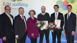 Der Studienpreis des Kreises Siegen-Wittgenstein geht an Christopher Weidt und Matthias Opitz. Landrat Andreas Müller und Prof. Dr. Peter Haring Bolívar, Prorektor für Forschung und…