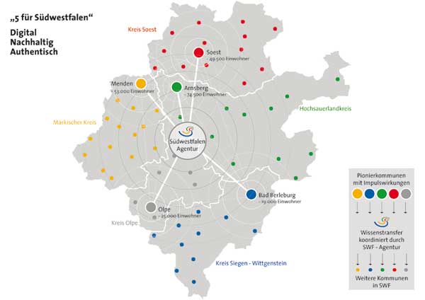 Die fünf südwestfälischen Kommunen wurden regionsintern ausgesucht. Sie haben bereits erste Anknüpfungspunkte für eine Smart-City-Strategie