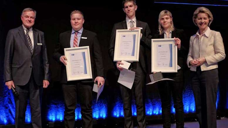IHK-Präsident Felix G. Hensel machte beim Jahresempfang der Industrie- und Handelskammer Siegen (IHK) erneut den Stellenwert der beruflichen Bildung für die heimische Wirtschaft deutlich. Der Fachkräftemangel zeige sich vor allem auf der Facharbeiterebene. Er warnte davor, die betriebliche Ausbildung nur als zweitklassig zu sehen: „Ein gutes Auskommen erzielt man mit einer ordentlichen Berufsausbildung eher als mit exotischen Studienabschlüssen.“ Wie leistungsfähig junge Menschen seien, die eine betriebliche Ausbildung durchliefen, zeige auch das Abschneiden der jahrgangsbesten Absolventen der kaufmännischen sowie der gewerblich-technischen Berufe im IHK-Bezirk. Diese wurden im Zuge des Jahresempfangs gemeinsam von Felix G. Hensel und der Gastrednerin, Bundesverteidigungsministerin Dr. Ursula von der Leyen, ausgezeichnet. „Sie zeigen in besonderer Weise, was die vielen jungen Leute leisten, die in unseren Betrieben und an unseren Berufskollegs ausgebildet werden. Mit Ihrem Können und Ihrem Ehrgeiz tragen Sie wesentlich zum wirtschaftlichen Erfolg unserer Region bei“, betonte der IHK-Präsident.