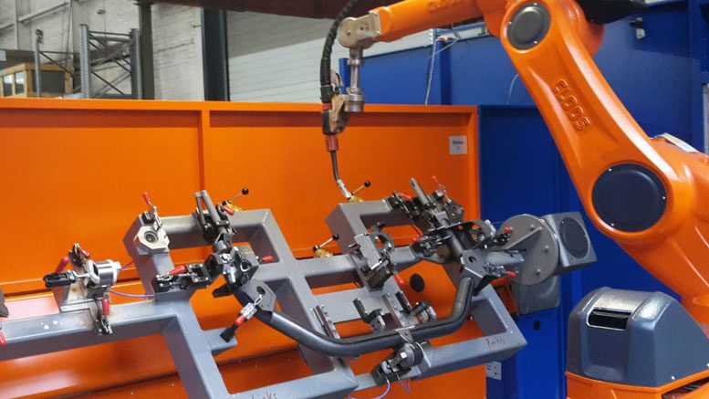 Im Projekt 5GROW sollen Schweißroboter mit Kameras ausgestattet werden, die den Schweißprozess filmen und die Roboterbahn mittels 5G und KI in Echtzeit regeln können. (Bildnachweis: Uni Siegen)