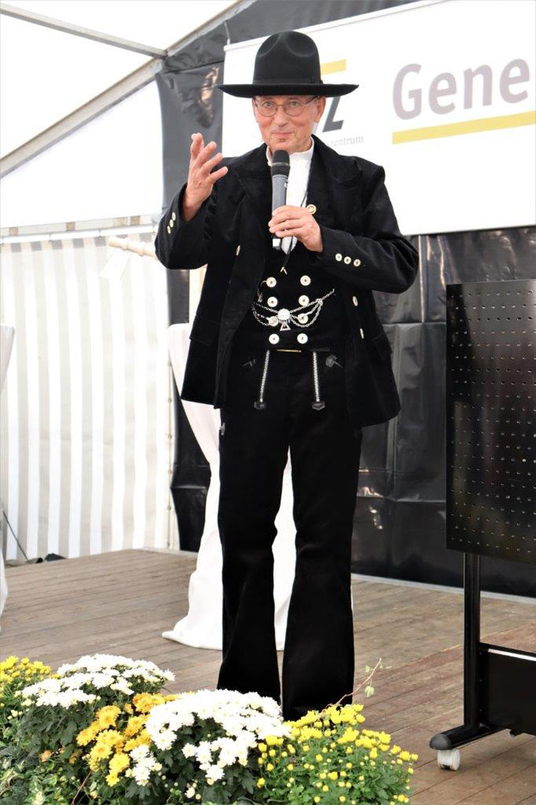Eines der Geschenke, die Horst Grübener bei seiner bewegenden Abschiedsfeier überreicht bekam, war eine nagelneue Zimmermannskluft. Darüber freute sich der gelernte Zimmerermeister besonders und betrat in seiner neuen Zunftkleidung stolz und gerührt ob der vielen wertschätzenden Worte die Bühne. „Ich kann das alles nur an die Kolleginnen und Kollegen weitergeben. Wir haben einfach ein super Team, deshalb sind wir so stark. Ich bin vor 25 Jahren aus Berufung hier ins AWZ Bau gekommen. Ich wusste immer: Hier gehöre ich hin. Ich habe das als ein anvertrautes Gut wahrgenommen, das ich heute gerne wieder zurückgebe. Die Pflicht ist erfüllt, nun kann die Kür kommen. Wenn ich gebraucht werde, bin ich gerne da. Wenn nicht, halte ich mich zurück“, so der 62-jährige.