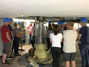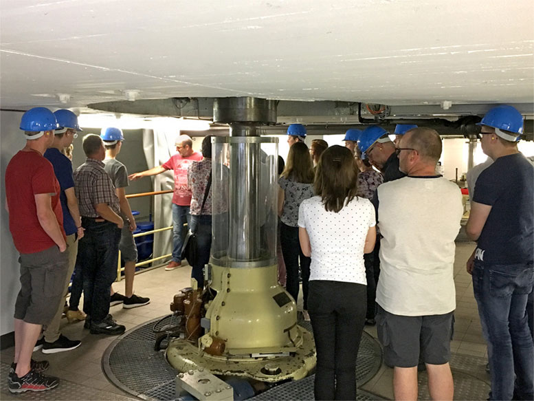 Geschäftsführer Ingo Ehrhardt begrüßte zusammen mit den Ausbildungsleitern Hans-Jürgen Feibel und Michael Köhler die Gäste am Standort in Olpe. Im Anschluss an die Vorstellung des Unternehmens und eine erste Fragerunde starteten die Besucher zur Führung. Dabei ging es durch die Büros der kaufmännischen Teams mit Zwischenstopps im Serverraum und dem IT-Bereich bis hin zur Netzleitwarte und in die Lehrwerkstatt. Dort konnten Projektarbeiten der aktuellen Auszubildenden bestaunt werden. Sie arbeiten hier schon ab dem ersten Lehrjahr an eigenen Modellen und Installationen. Ein besonderer Höhepunkt war der anschließende Besuch des Wasserkraftwerks in Attendorn, bei dem die Besucher hautnah erleben konnten, wo und wie der Ökostrom für die Region entsteht.