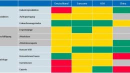 Viel Gelb und ein bisschen Rot: Für Deutschland deuten derzeit viele Indikatoren auf wirtschaftliche Probleme hin. Zwar ist die Wirtschaft im ersten Halbjahr noch um…