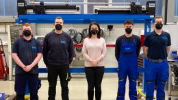 Sie haben die Berufsausbildung bei der EMG Automation GmbH erfolgreich abgeschlossen: Jean-Lennart Fazlioglu (Elektroniker für Betriebstechnik), Magdalena Libera (Technische Produktdesignerin), Elias Schade (Zerspanungsmechaniker), Jan Schneider…