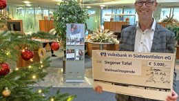 Auch in diesem Jahr verzichtet die Volksbank in Südwestfalen eG darauf, Weihnachtsgeschenke an Kunden und Geschäftspartnern zu geben. Stattdessen spendet das Institut insgesamt 10.000 Euro…