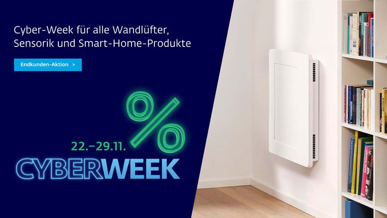 Auf Wandlüfter wie den energieeffizienten AEROTUBE WRG oder den flüsterleisen Alleskönner AEROVITAL erhalten sie z. B. einschließlich der Zubehörteile 20 % Rabatt. Das gilt auch für ausgewählte Smart Home-Lösungen wie den Funk-Fenstersensor senso secure und die Connect-Box zur Einbindung der Sensorik von SIEGENIA in das Heimnetzwerk – sogar mit attraktiver Zusatzoption: Sparfüchse erhalten am Black Friday stolze 30 % Rabatt auf den Funk-Fenstersensor, der den Öffnungszustand von Fenstern überwacht und so für smarte Sicherheit sorgt. Auch der kompakte Luftqualitätssensor CheckAER ist im Rahmen der Cyber Week vergünstigt zu haben. Auf ihn erhalten Endanwender 10 % Rabatt.