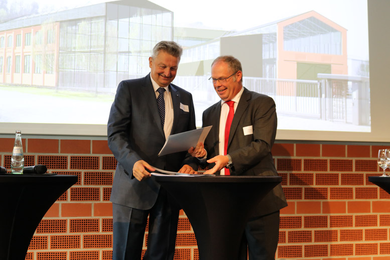 Dipl.-Ing. ETH Axel E. Barten (links), Geschäftsführender Gesellschafter der Achenbach Buschhütten GmbH & Co. KG, und Ulf Richter, Kanzler der Universität Siegen, unterzeichneten den Vertrag.