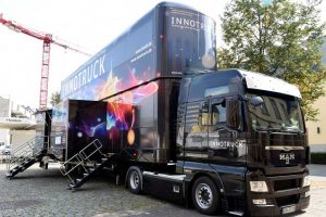 Der InnoTruck tourt durch ganz Deutschland. Das BMBF fördert mit der Initiative den öffentlichen Dialog über die Frage, wie Innovationen im technisch-naturwissenschaftlichen Bereich vorangetrieben werden sollen, um ihren größtmöglichen Nutzen zu entfalten.