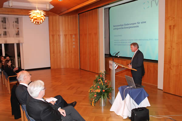 Professor Dr. Manuel Frondel vom Rheinisch-Westfälischen Institut für Wirtschaftsforschung in Essen machte in seinem Vortrag deutlich, welche Änderungen für eine erfolgreiche Energiewende erforderlich wären.