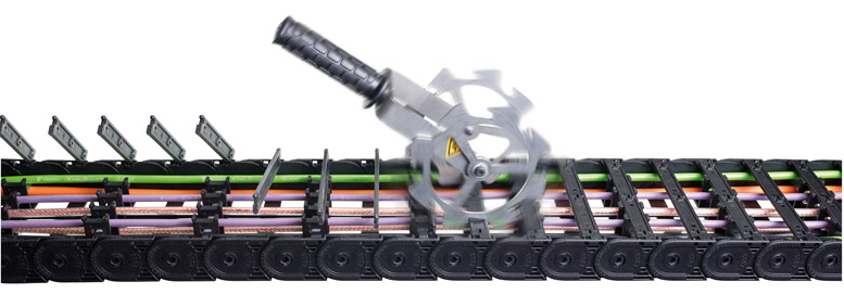 Die Energieführungsketten der Serien EASYTRAX, QUICKTRAX und UNIFLEX Advanced haben eines gemeinsam: Sie sind jeweils so konzipiert, dass sie sich schnell öffnen lassen. So fallen Leitungsbelegung und -austausch besonders leicht, der Anwender spart Zeit und Geld.