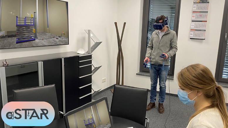 Das BMBF- & ESF-geförderte Forschungsprojekt „aSTAR“ unter Beteiligung der heimischen Universität Siegen und des heimischen mittelständischen Kranbauers Vetter Krantechnik GmbH sowie dem ISF München und der Kirchner Konstruktionen GmbH befasst sich mit dieser Thematik. Der Projektkoordinator Andreas Weigel berichtet: „Der Kranmontageprozess in der VR ist nun von der Verankerung im Boden über die Montage der Kransäule bis hin zur letztendlichen Benutzung des vollständigen Krans möglich. Für die Umgebung stehen mittlerweile zwei Alternativen zur Verfügung – eine Industriehalle und eine Hafenumgebung.“ Gerade sind die Konsortialpartner des Forschungsprojektes dabei, den VR-Demonstrator (die entwickelte Software) für den Kranmontageprozess im Multiuser-Modus zu testen und evaluieren. Das bedeutet, dass aktuell zwei Probanden einen Schwenkkran in der VR gemeinsam montieren können. Die Probanden sind über das VR-Head-Mounted-Display miteinander verbunden und können sich, wie unter nicht virtuellen Umständen, austauschen und miteinander kommunizieren. In der VR können die Probanden sich gegenseitig als virtuelle Avatare wahrnehmen, sodass es ihnen zu jeder Zeit möglich ist, die Position und Aktivitäten des jeweils anderen visuell nachzuvollziehen. Der sogenannte Multiuser-Modus ermöglicht es den Projektpartnern verschiedene Faktoren zu untersuchen. Neben der technischen Evaluation der Software stehen daher vor allem die Kooperation, der Wissensaustausch und die Interaktion der beiden Probanden während des Montageprozesses in der VR im Fokus der Untersuchungen. Dabei wurden bewusst Probanden mit unterschiedlichen beruflichen Hintergründen (Servicetechniker, Konstrukteur etc.) mit dem virtuellen Kranmontageprozess konfrontiert. Im Anschluss an die VR Erfahrung wurden die Probanden interviewt, um die Eindrücke und Verbesserungspotenziale zu erfassen. Dadurch können Rückschlüsse auf die optimale Gestaltung der VR und die Aufgabenrepräsentation gezogen werden. Dies betrifft unter anderem die Förderung der Wissensweitergabe und der Kollaborationsbereitschaft. Die gewonnenen Erkenntnisse werden im nächsten Schritt zur Weiterentwicklung des VR-Demonstrators genutzt. Im Frühsommer soll dann eine weitere Evaluation durchgeführt werden, um die Forschung und die gefundenen Erkenntnisse weiter zu validieren.