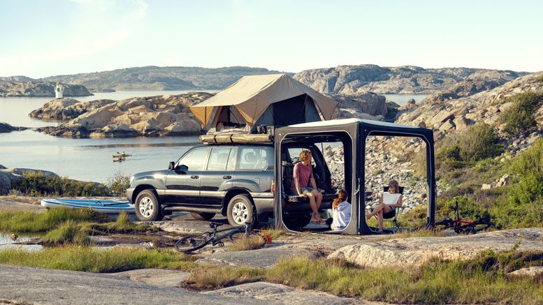 Nutzen Sie ihn freistehend oder fügen Sie optionale Anschlussschleusen hinzu, um ihn am SUV oder Campingbus zu befestigen