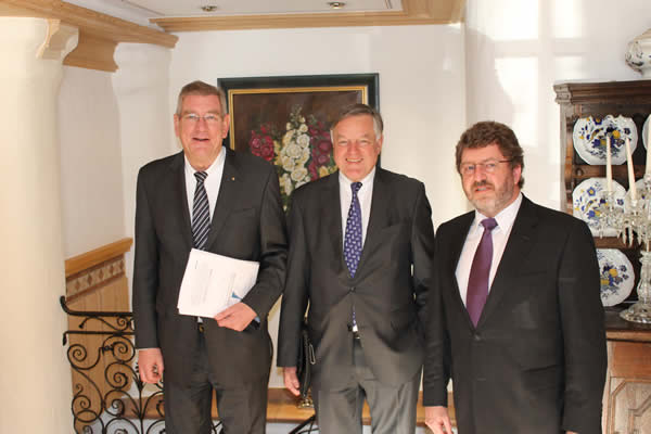 Arndt G. Kirchhoff (links), Felix G. Hensel (Mitte) und Stephan Stracke stellte die Ergebnisse der Konjunkturumfrage des AGV Olpe vor.