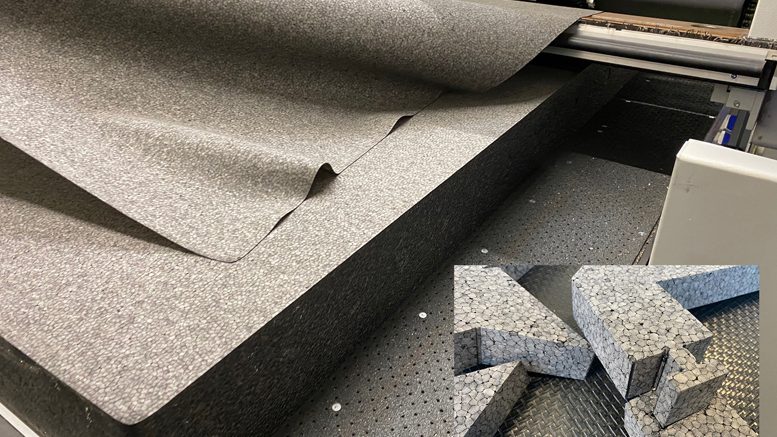 Da der Schaumstoff, der vor allem für Nachhaltigkeit steht, ideal für hochwertige Verpackungslösungen geeignet ist, wurden anschließend Tests auf der Vertikalen Konturenschneidmaschine OFS-VS durchgeführt. Eng verschachtelte Konturen und scharfe Kanten überzeugten Jiri, dass ARPLANK und Bäumer-Maschinen perfekt zueinander passen.