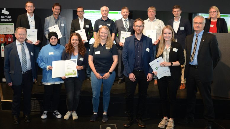 Im Bild (hinten, von links): Mitja Alexander Karpf / Osterrath, Rainer Pöppel / REGUPOL BSW, Franz-Josef Knust / Gontermann Peipers, Volker Jussen / BIKAR-METALLE, Jan Krückemeyer / Krückemeyer, Tobias Pfeil / Gerhard Pfeil, Tim Lochschmidt / Ministerium für Umwelt, Landwirtschaft, Natur- und Verbraucherschutz des Landes Nordrhein-Westfalen, Anja Berg / Kreis Soest, (Im Bild) vorne, von links: Gerhard Blecher / Erich Utsch AG, Yagmur Düger und Luna Lebang / Alfred Schellenberg, Lisa Schmidt / BIKAR-METALLE, Markus Menn und Lara Meurer, Kreis Siegen-Wittgenstein, Thomas Grüger / Erich Utsch AG.