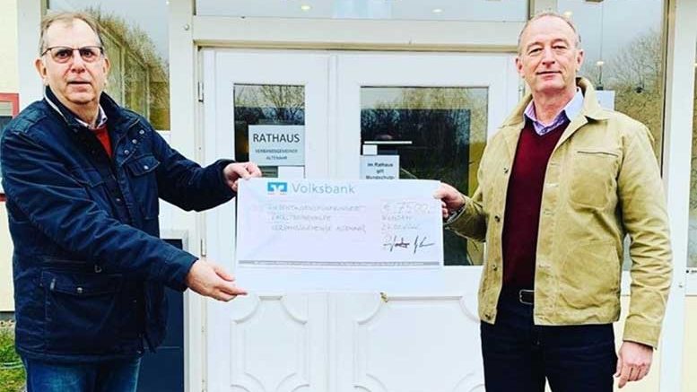 Die EMG Automation GmbH aus dem sauerländischen Wenden spendet 7.500 EUR für die Katastrophenhilfe der Verbandsgemeinde Altenahr. Den Scheck überreichte jetzt in Altenahr Dr. Rolf Merte, CEO der EMG, dem ersten Beigeordneten der Verbandsgemeinde Georg Knieps.