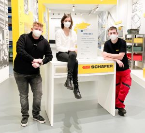 Das Team der SSI Schäfer Fritz Schäfer GmbH um Jakub Schneider (l.), Carolin Grimm und Christopher Lückel erzielte den 3. Platz. Auf dem Foto fehlt Rahel Kretz.