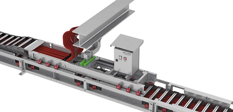 Die Zug-Schubkraft-Überwachungseinheit von TSUBAKI KABELSCHLEPP führt konstante Messungen am Mitnehmerarm durch. Sollte die Energiekette durch Fremdeinwirkung blockieren, lassen sich so Beschädigungen am Gesamtsystem und in Folge kostenintensive unerwartete Ausfallzeiten verhindern. Das System ist für sämtliche Industrie-Bereiche konzipiert, eignet sich aber besonders für Krane und lange Verfahrwege.