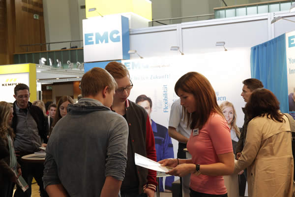 Die Messe bot an beiden Tagen von 13 bis 18 Uhr für Schüler aller Schulformen und natürlich auch für deren Eltern umfassende praxisnahe Einblicke in rund 90 verschiedene Berufe und schulische Ausbildungsgänge. Angesprochen waren in erster Linie die Jahrgangsstufen 8 bis 12. Um Berührungsängste gar nicht erst aufkommen zu lassen, brachten die meisten Ausbilder ihre Auszubildenden mit, die erfahrungsgemäß leicht mit den jungen Besuchern ins Gespräch kamen und dabei authentisch aus ihrem Azubi-Alltag berichteten. Für Abiturienten waren neben den Präsentationen vieler dualer Ausbildungsberufe auch die Informationen zu dualen Studiengängen interessant. So wurde erst kürzlich der Duale Studiengang „Maschinenbau“ an der Uni Siegen neu strukturiert und mit einer Ausbildung zum Industriemechaniker kombiniert.