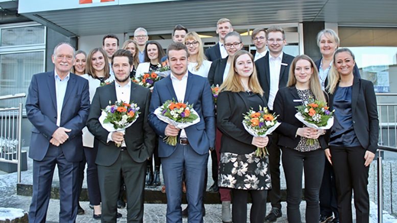 In der Filiale Meinerzhagen beglückwünschten Mitte Januar die Volksbank-Vorstandssprecher Karl-Michael Dommes sowie Norbert Kaufmann insgesamt 14 frisch gebackene Bankkaufleute zu ihren erfolgreich vor der Industrie- und Handelskammer abgelegten Abschlussprüfungen. Sie sind der erste Abschlussjahrgang im fusionierten Haus der Volksbank in Südwestfalen eG.