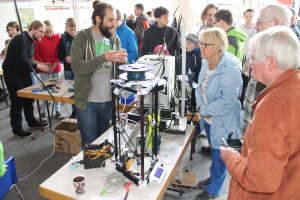 Mit dabei ist auch wieder die Universität Siegen. Hier können die Besucher spannende Experimente aus der Naturwissenschaft und Technik live erleben und selbst durchführen. Uni-Tutoren und Lehrkräfte leisten Hilfestellung, die physikalischen oder chemischen Hintergründe zu verstehen. Dabei liegen die Schwerpunkte auf „Elektrische Energie – universell und schnell“, „Thermische Energie – nicht nur heiße Luft “ und „Mechanische Energie – Muskelkraft und mehr „. Die verschiedenen Ergebnisse z.B. mit der Pommesbatterie oder dem Gummiband-Dragster dürfen dann auch mit nach Hause genommen werden. Technik macht Spaß.