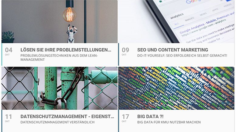 Im Rahmen unterschiedlicher Workshops aus den Fachbereichen Prozess- und Lean-Management sowie E-Business, werden den Teilnehmern in kleinen Gruppen zielgerichtete Methoden und Lösungsansätze vermittelt. Die Workshops stehen dabei unter dem Leitbild „Wissenstransfer zur Selbstbefähigung“ und ermöglichen es den Teilnehmern, eigenständig im Unternehmen aktiv zu werden und Maßnahmen umzusetzen. Diese Vorgehensweise stößt gerade in wachstumsgetriebenen mittelständischen Unternehmen auf breite Akzeptanz.