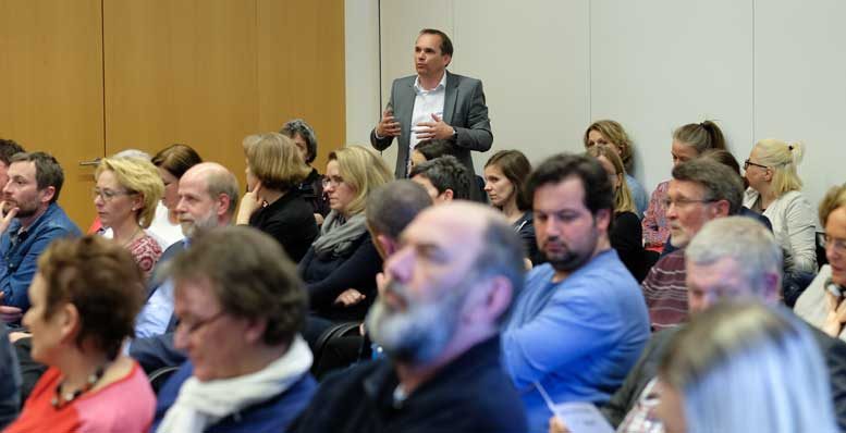 „Grundsätzliches Ziel des Jobcenters ist“, so Achim Otto in seinem Diskussionsbeitrag, „die Flüchtlinge nicht in spezielle Flüchtlingsqualifizierungen zu stecken, sondern in ‚normale‘. Dadurch funktioniert die Integration besser“. Ein wichtiger Punkt dabei: Betriebspraktika. So früh wie möglich müsse eine berufsbegleitende Qualifizierung stattfinden. Otto erhofft sich deshalb, mehr Unternehmen ließen sich genau darauf ein. Dazu müsste zunächst die Bereitschaft der Einzelnen besser erfasst werden, um sie im Anschluss entsprechend schnell nutzen zu können. IHK-Geschäftsführer Klaus Fenster fügte hinzu: „Wir haben im Berufsbildungszentrum die Erfahrung gemacht, dass der Wille, Flüchtlinge zu integrieren und auch auszubilden, groß ist.“ Er ergänzte: „Der nächste Schritt ist jetzt, Betriebe systematisch nach Praktikumsplätzen anzufragen.“