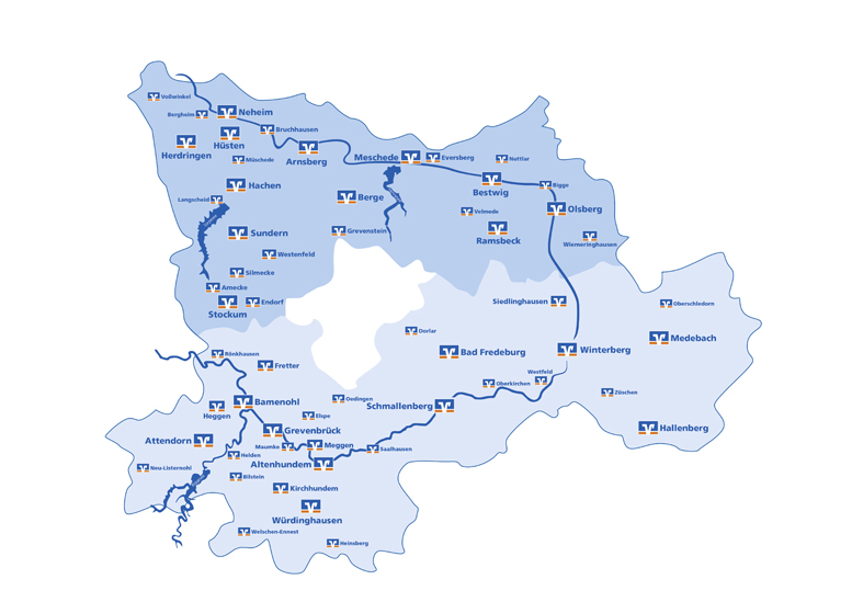 Das neue Geschäftsgebiet der neuen Volksbank Sauerland eG.