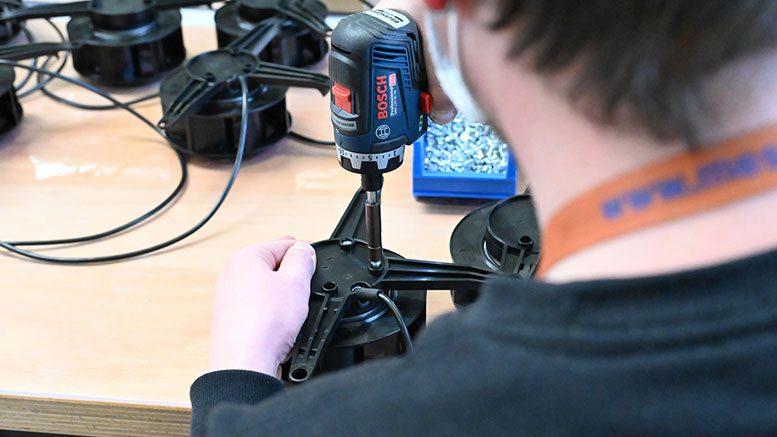 Vielversprechend verlief auch der Einstieg bei SIEGENIA. Mit dem Bus fahren die AWORK-Beschäftigten eigenständig nach Wilnsdorf; derzeit sind es eine Frau und drei Männer. Eine fünfte Kraft soll das Team schon bald verstärken; die Stelle ist derzeit bei AWORK in Ausschreibung. Aufgabe der AWORK-Beschäftigten, die über unterschiedliche Grade der Beeinträchtigung verfügen, ist aktuell die Fertigung der Unterbaugruppen für den Wandlüfter AEROPAC, ein kompakter Schalldämmlüfter für lärmbelastete Umgebungen z. B. in Flughafennähe.