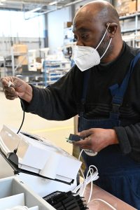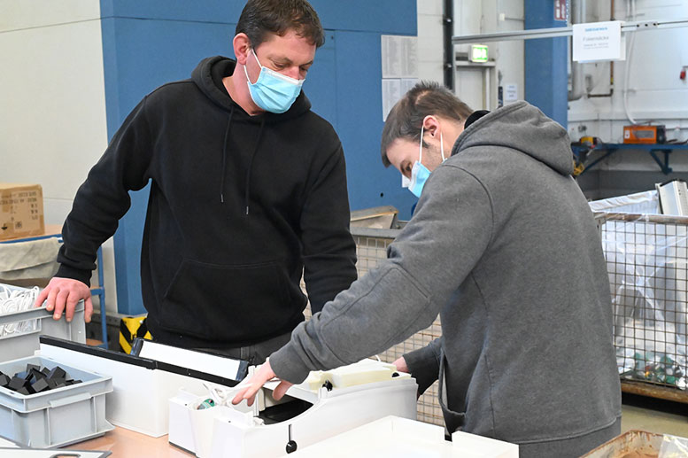 „Wenn sich die Abläufe erst einmal eingespielt haben, ist für uns denkbar, dass die AWORK-Kräfte im nächsten Schritt die Komplettmontage übernehmen“, schildert Raphael Weber mögliche Perspektiven. Tim Sprengel zeigt sich diesbezüglich optimistisch: „Schon jetzt sitzen die Arbeitsabläufe sehr gut. Unsere Erfahrung mit beeinträchtigten Menschen ist, dass die Lernkurve langsam, aber beständig nach oben geht. Hat sich das Gelernte einmal gefestigt, halten sie ihre Stückzahlen konstant – egal, was kommt.“