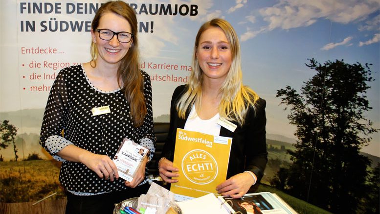 Finde Deinen Traumjob in Südwestfalen: Die Vertreter der Südwestfalen Agentur, Carina Ewers und Kim Bruse, informierten Interessierte über die spannenden Job-Perspektiven in der Region.