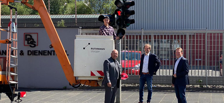 1928 hat die Dango & Dienenthal Maschinenbau GmbH in Siegen gegenüber der Werkstatt ein neues Bürogebäude errichtet. Seitdem trennt die Hagener Straße das Unternehmen in zwei Teile. Tagtäglich nutzen die Mitarbeiter des Unternehmens die Ampel vor der Verwaltung, um von dem einen Teil des Unternehmens zum anderen Teil zu gelangen. Mit der Erlaubnis der Stadt Siegen konnte die Ampel jetzt mit zwei berühmten Symbolen ausgestattet werden, dem Bergmann „Henner“ und dem Eisenmann „Frieder“. Beide Figuren stehen für die lange Tradition des Bergbaus und der Hüttenindustrie im Siegerland. In Anwesenheit von Siegens Bürgermeister Steffen Mues sowie den Geschäftsführenden Gesellschaftern des Unternehmens, Dipl.-Ing. Rainer Dango und Dipl.-Ing. Arno Dienenthal, wurden die beiden Leuchten installiert.