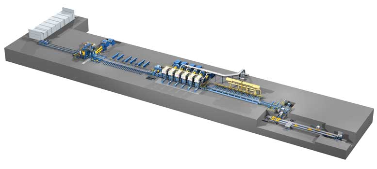 Die Fertiggerüste sind mit dem CVC plus®-System (Continuously Variable Crown) mit integrierter Arbeitswalzenbiegung und hydraulischen Anstellungen ausgestattet, so dass Bänder mit sehr engen Dicken-, Profil-, Kontur- und Planheitstoleranzen produziert werden können. Zu den Ecoplants-Komponenten in der Fertigstraße zählen die SIEFLEX®-HT-Hochleistungsspindeln, deren Auslegung die Übertragung höherer Walzmomente bei kleineren Arbeitswalzendurchmessern erlaubt. Eine weitere Neuheit ist eine hocheffiziente zweistufige Arbeitswalzenkühlung, die mit unterschiedlichen Druckstufen arbeitet.