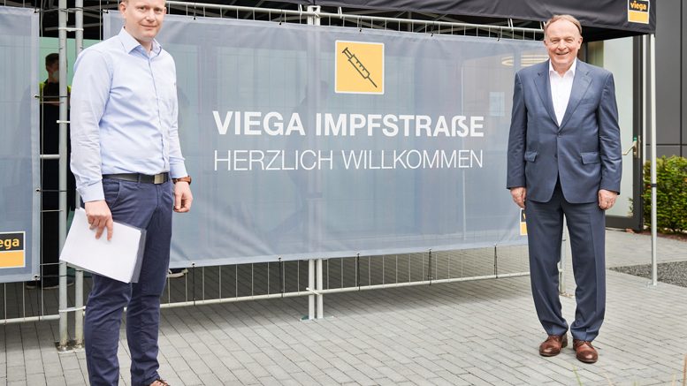 Walter Viegener, geschäftsführender Gesellschafter der Viega Holding GmbH & Co. KG, zeigt sich sehr erleichtert, dass es jetzt „endlich losgehe“. Die Impfstraße in der Firmenzentrale in Attendorn wartet bereits seit Anfang Mai auf ihren Einsatz. „Ich freue mich sehr, dass wir unseren Mitarbeiterinnen und Mitarbeitern jetzt die Möglichkeit eröffnen können, sich impfen zu lassen. Dieses Angebot ist ein weiterer, sehr wichtiger Baustein, um die Gesundheit unserer Mitarbeiterinnen und Mitarbeiter bestmöglich sicherzustellen.“