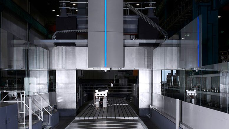 Zur Herstellung von Spritzgussmaschinen mit einer Schließkraft von bis zu 6.000 t braucht es leistungsstarke, robuste und hochpräzise Werkzeugmaschinen für die Großteilebearbeitung. Daher sind beide Maschinen mit einer Länge von je 25,30 m mit vollhydrostatischen Führungen in allen Hauptachsen ausgeführt. Trotz der beeindruckenden Dimension von über 70 m Gesamtanlagenlänge und einer Fräsleistung von über 100 kW überzeugen beide Maschinen mit höchster Dauergenauigkeit in der Bearbeitung der Planflächen (0,02 mm) und Holmbohrungen (≤ 0,01 mm) sowie einem speziell für unseren Kunden entwickelten flexiblen und vollautomatisierten Maschinenkonzept.